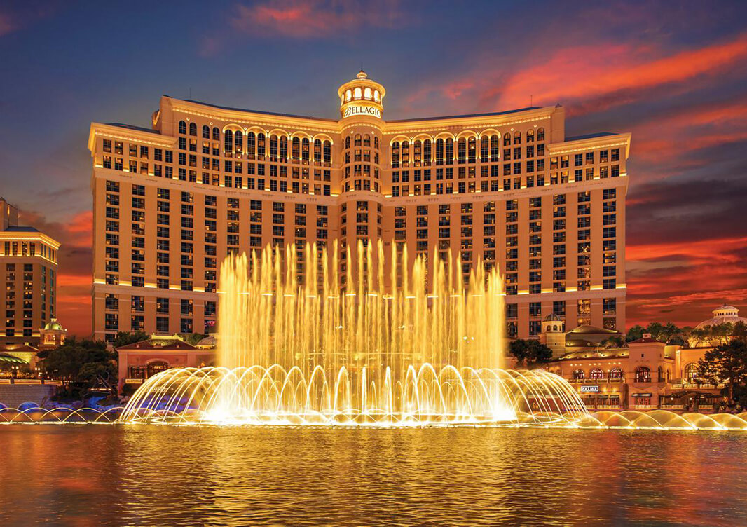 Bellagio er kanskje mest kjent for sine fontener, som er en berømt severdighet. Hver dag gis det flere fontenespill med musikk og lys. Hotellet har også flere prisbelønnede restauranter og de helt store artistene kommer hit for å opptre. Casinoet byr på spenning med både lave og høye innsatser. Kjenn deg som en filmstjerne med den overdådige innredningen som kulisse, og en drink i hånden når du spiller bordspill. Få høy puls i en pokerturnering eller prøv lykken ved noen av de mange spilleautomatene. Når du trenger å roe nervene, kan du hvile ut ved et av bassengene eller ta en tur i den botaniske hagen. På kvelden kan du hygge deg i en av nattklubbene eller barene.