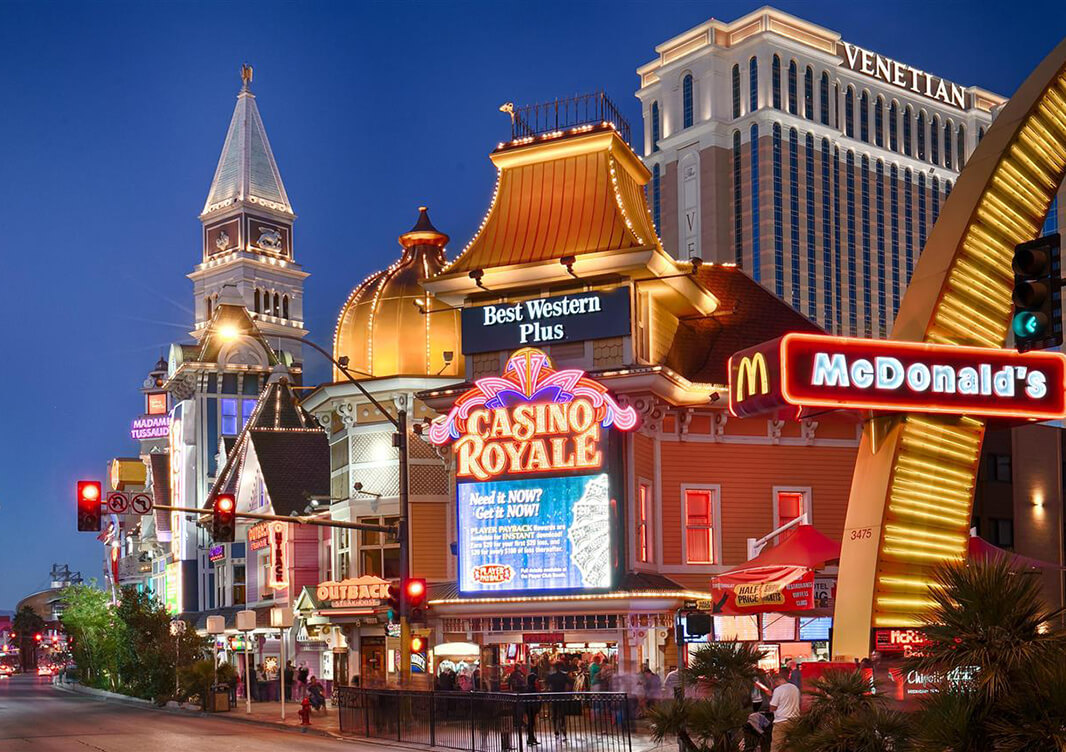 Best Western er et rimeligere alternativ enn mange av de store og berømte hotellene. Beliggenheten midt på The Strip med alle de store casinohotellene rett ved siden av er helt perfekt. Da får du hele Las Vegas-opplevelsen når du bor her. Casino Royale har alt du kan ønske deg for en ekte casinokveld. Utvalget av spilleautomater oppdateres ofte, og du finner selvfølgelig alle favorittene blant live bordspillene, som Roulette og Black Jack. Du kan spille med lavere innsatser, og i tillegg er det Happy Hour hele dagen! Hotellet er røykfritt og du har tilgang til et utendørs svømmebasseng med loungeområde, gym, barer og restauranter.